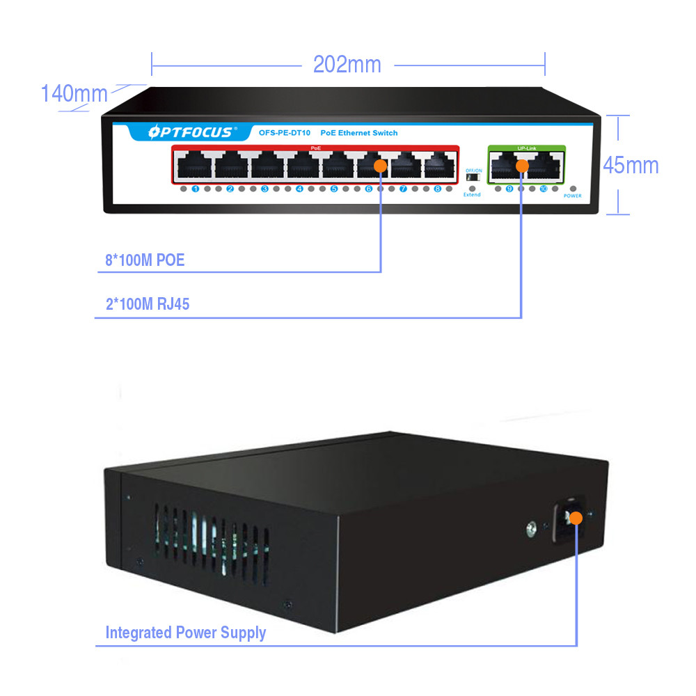 세력 수플라이 종류: | in,1/2+,3/6을 구축하세요- | 연결기: | 8*10/100mbps 포 port,2*10/100mbps 업-링크 포트 |